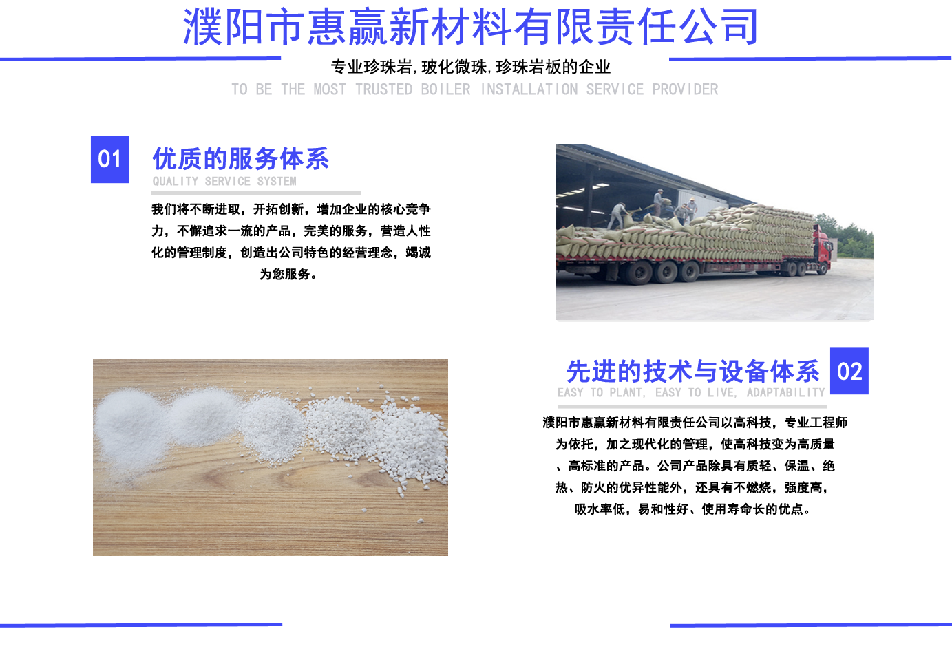 濮陽(yáng)市惠贏新材料有限責(zé)任公司是一家專(zhuān)業(yè)生產(chǎn)保溫材料的廠家,位于范縣王樓鎮(zhèn)工業(yè)區(qū),專(zhuān)業(yè)生產(chǎn)珍珠巖、珍珠巖保溫板、玻化微珠等保溫建材,主要用于外墻保溫、屋面保溫、園藝等領(lǐng)域,產(chǎn)品暢銷(xiāo)國(guó)內(nèi)外,深受客戶(hù)一致好評(píng)。我們擁有優(yōu)秀的產(chǎn)品和服務(wù),在成立以來(lái)都以誠(chéng)信對(duì)待客戶(hù)! 公司擁有各類(lèi)專(zhuān)業(yè)人才,技術(shù)人員50人,運(yùn)輸40人,專(zhuān)業(yè)的十多輛運(yùn)輸車(chē)輛。產(chǎn)品銷(xiāo)售網(wǎng)絡(luò)遍及國(guó)內(nèi)20多個(gè)省市,十幾年來(lái),通過(guò)公司的不懈努力和誠(chéng)信經(jīng)營(yíng)理念,產(chǎn)品質(zhì)量可靠,價(jià)格合理,深受廣大客戶(hù)認(rèn)可和好評(píng)! 我公司本著以客戶(hù)為本,客觀實(shí)際,創(chuàng)新發(fā)展的原則,在追求完美極致的道路上努力打造行業(yè)新標(biāo)準(zhǔn),我公司憑借卓越的產(chǎn)品質(zhì)量、完善的服務(wù)標(biāo)準(zhǔn)、良好的口碑信譽(yù)、竭誠(chéng)歡迎廣大客戶(hù)前來(lái)洽談業(yè)務(wù)!...